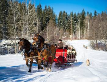 Hear the soothing clippity clop of hooves as you ride through Suncadia in a sleigh pulled by our gentle Percheron horses -...